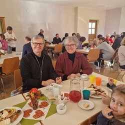 Zum anschließenden Pfarrkaffee lud der Kirchenchor herzlich ein und freute sich über viele Gäste, die das Zusammensitzen bei Kuchen und Kaffee/Tee in netter Gemeinschaft - auch mit Diakon Johannes und seiner Familie - sehr genossen. Ein netter Ausklang eines besonderen Vormittags!