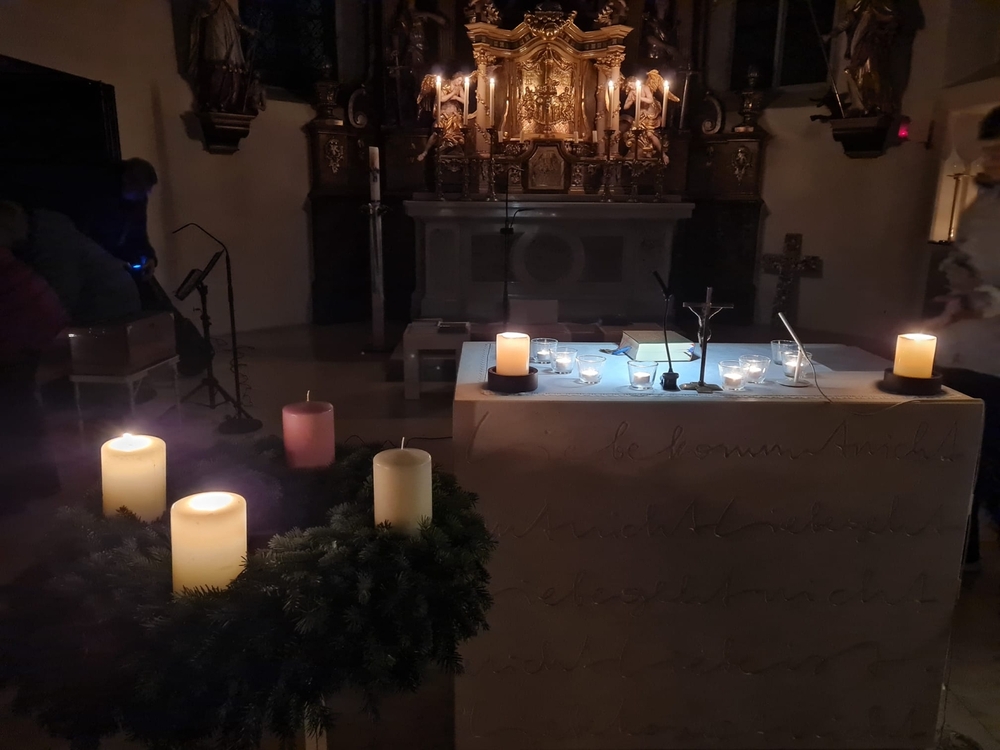 Gedanklich führte uns Vikar Norbert auf die Spur, was der Vers „Seid also wachsam!“ aus dem Evangelium (Mt 24, 42) für uns heute heißen kann - und wie die Vision des Jesaja, dass Schwerter zu Pflugscharen und Lanzen zu Winzermessern umgeschmiedet werden (Jes 2, 4), in unserer Welt ein Stück weit Wirklichkeit werden könnte. Es kann nur gelingen, wenn „Menschen ihr Lebensnavi in Jesus verankern“, so Vikar N. Glaser in seiner Predigt.