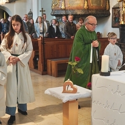 Eine Besonderheit inmitten der Feier stellte die Katechumenensalbung eines Erstkommunionmädchens dar, das im April getauft wird, um dann im Mai gemeinsam mit den anderen Kindern die Erstkommunion empfangen zu können.